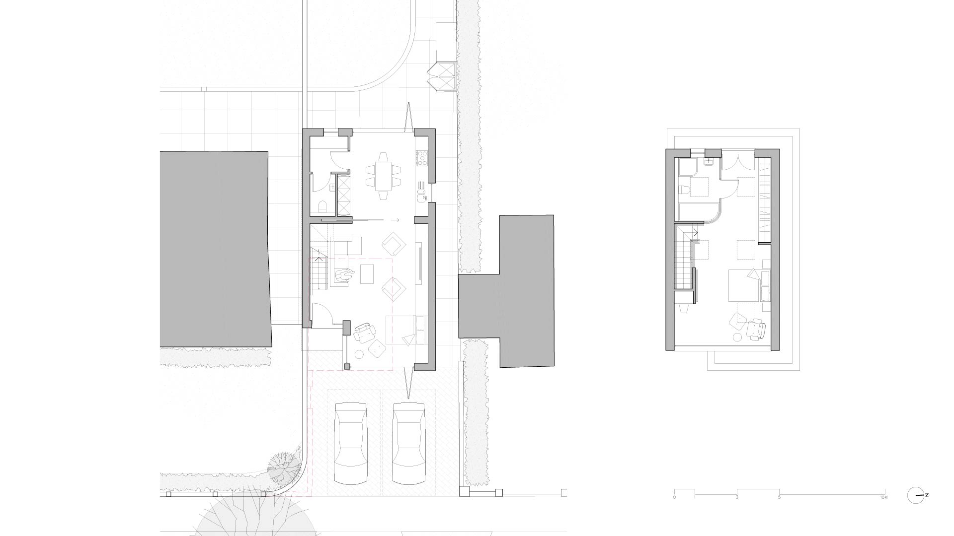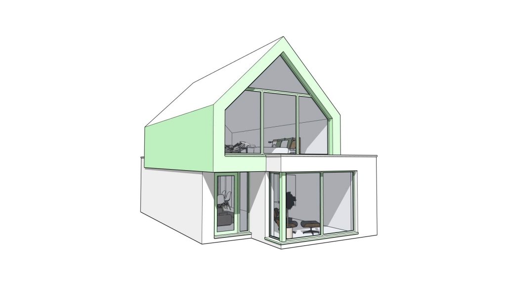 A sensitively designed infill development introducing a modest 1.5‑storey one‑bedroom dwelling within the grounds of an existing property in Birchington. The scheme replaces an underused garage and reorganises the plot to provide improved access, parking and landscaping for both homes. A material palette of white brickwork, green metal cladding and matching red brick boundary walls allows the new dwelling to sit comfortably within the suburban streetscape, while its pitched roof and compact massing maintain the established residential rhythm. Soft landscaping, a private rear garden and carefully reconfigured site access complete a discreet, contemporary addition that enhances both the character and functionality of the site.
